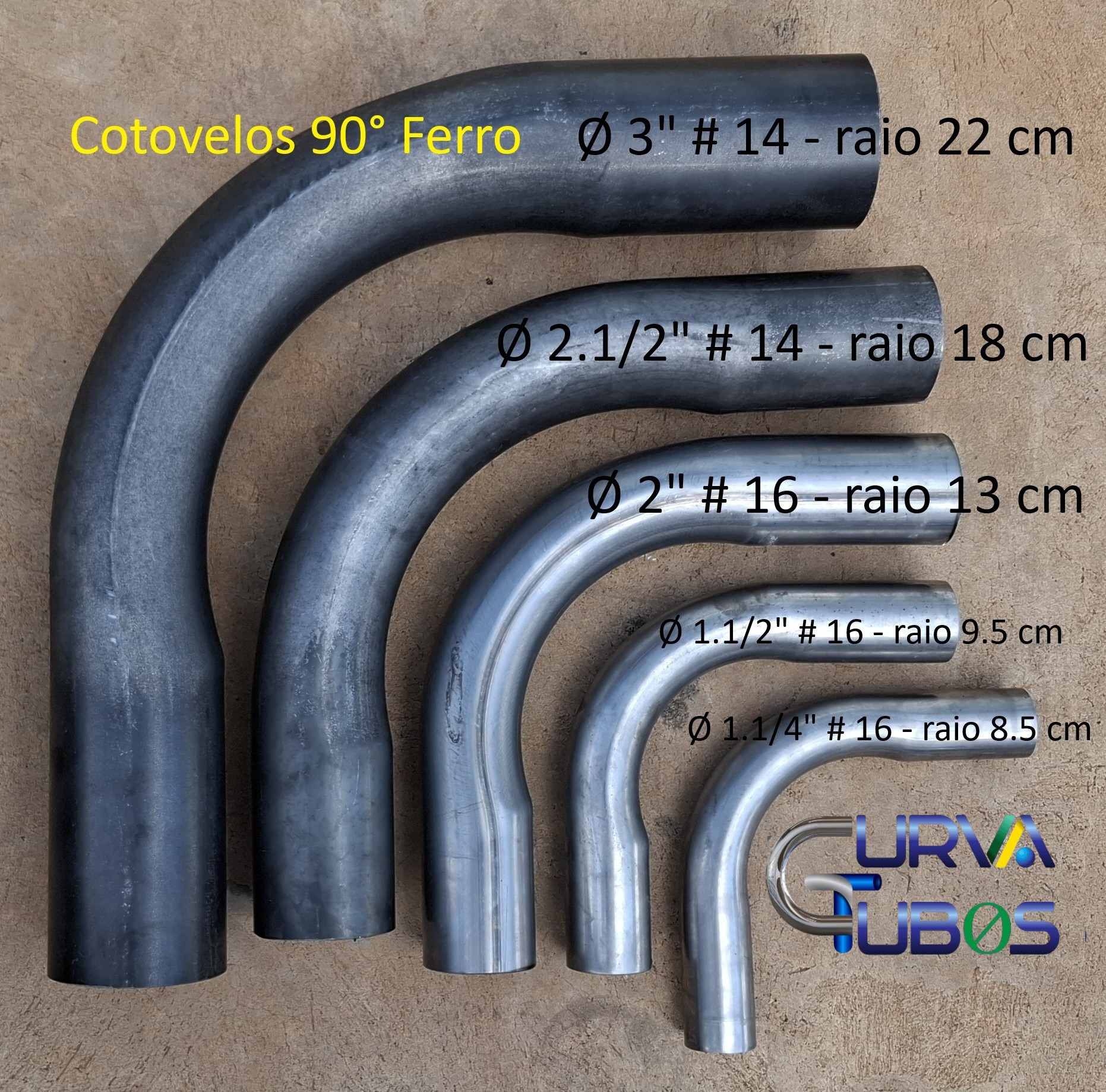 Curva Tubos, fabricamos e temos estoque permanente de curvas para corrimão, de 180° e 90° nos tubos, Ø 1.14” – Ø 1.1/2” e Ø 2” ferro aço carbono, dentro das normas dos Bombeiros